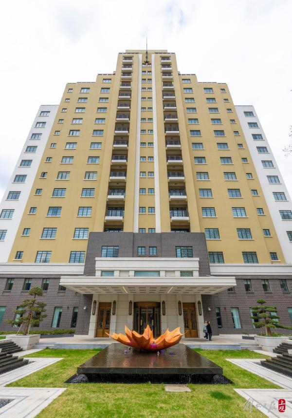 在衡山路、宛平路、建国西路交汇处,修缮一新的衡山花园酒店主楼已初露真容。酒店白色与暖黄色相间的主楼外立面色调搭配明快和谐,与1934年建成的毕卡第公寓的初始面貌十分接近。