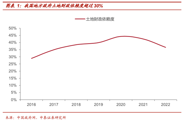 特别是在地方财政严重困难的情况下,土地财政在推动基础设施建设和社会事业发展等方面发挥了巨大作用。仅计算狭义的土地出让收入,以一般公共预算收入和政府性基金预算收入为地方财政收入基准,当前我国地方政府对土地财政的依赖度超过了30%。
