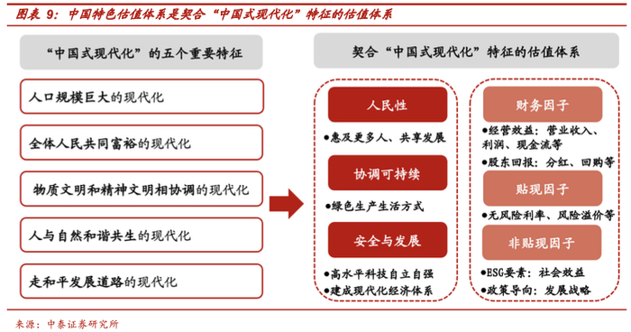 为了解决我国估值体系定价效率低的问题,去年11月证监会提出了要“探索建立具有中国特色的估值体系”。未来在中国特色估值体系的建设下,市场将逐渐摒弃单一的利润价值取向,并结合更多因素综合定价,如将ESG等纳入到估值体系中,有利于低估核心资产估值的提升。