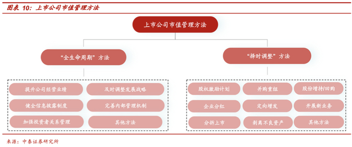 除了上述市场环境与制度方面的因素外,上市国企对于投资者关系维护以及资本运作开展的不足也导致了企业的市值保持在较低水平。我们不能用简单的“二极管思维”理解市值增长,市值不等同于做大利润,做大利润只是市值管理过程中“价值创造”的部分,而要实现市值的增长,往往还要打通“价值创造”的过程。