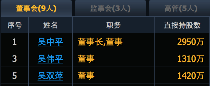 三人年龄各相差两岁,都在公司担任董事,1968年出生、持股最多的老二吴中平担任董事长。