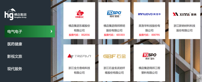 2002年,横店集团通过收购控股太原刚玉,发展钕铁硼磁性材料产业,并在2014年置入横店集团重要资产联宜电机。两年后,太原刚玉更名英洛华,并在2021年迁址横店。