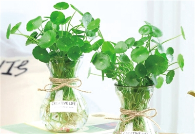 要问花鸟市场上最常见的水培植物是什么?那非铜钱草莫属,铜钱草叶片圆圆的、小小的,看上去很可爱,它还有着“大富大贵”的美好寓意,所以不只适合家庭盆栽,在一些商店也经常能见到它的身影。铜钱草水培的方法是很简单的,市场上买回来的铜钱草都是带容器的,只要放在家里散射光处养护,水少了给它加点水,平时可以经常转动一下花盆,避免因为向光性发生偏头的情况。温度高的时候铜钱草的长势是很快的,每天都需要往容器中加水,避免水量过少发生干枯的情况。养护铜钱草还有一点要注意的就是低温,冬季要保证养护温度在5摄氏度以上,养护温度过低可能会导致铜钱草叶片发黄,干枯。