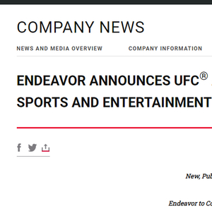 Emanuel声明称,这是一个难得的机会,可以创建一个针对该行业发展方向的全球直播体育和娱乐比赛形势,我们相信Endeavor可以通过将UFC和WWE结合起来为股东带来显著的额外价值。