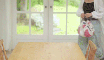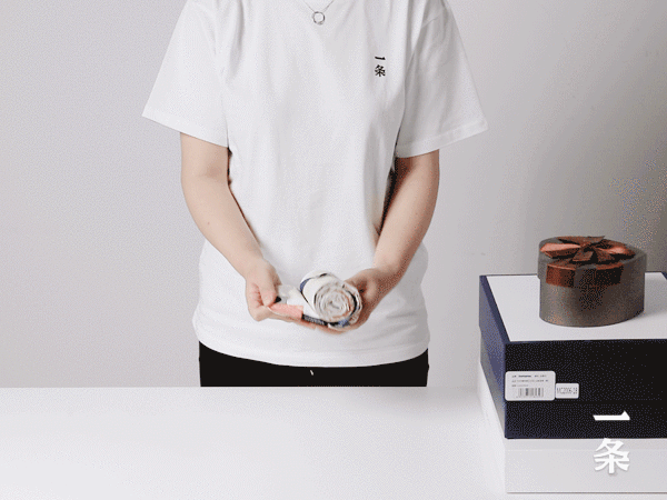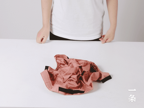 不管造型多乱,只要拉住两端一扯,只听到“咻~啪!”的声音,收纳袋就对线整齐了。
