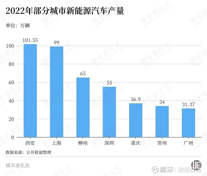 去年受比亚迪大卖拉升,西安新能源汽车产量101.55万辆,同比增长277.5%,占全国份额的14.38%,成功超越上海成为了新能源汽车第一城。