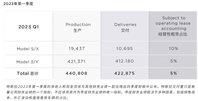 4月3日,特斯拉发布2023年第一季度全球生产及交付报告,公司报告期内交付量达到42.2万辆的交付量,打破了特斯拉单季度的交付纪录。