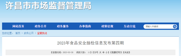 河南省许昌市2023年食品安全抽检信息(第四期)