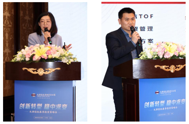 此外,天津信托资本市场总部邢亚楠、风险管理总部刘育琳围绕“天津信托TOF产品”、“城投债展业策略”与到场投资者进行交流。两位嘉宾分别就天津信托TOF业务特色、亮点,城投行业政策、城投债市场走势以及各区域信用趋势展望带来核心观点,让投资者更加清楚了解到天津信托的产品布局和风控标准。