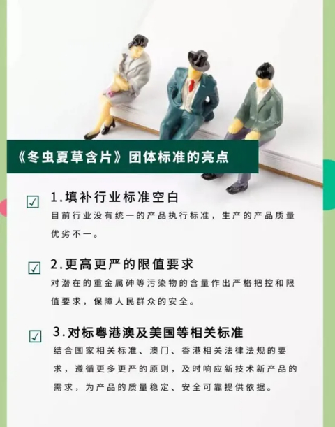2021年,东阳光联合国内权威机构、知名大学、冬虫夏草产业链上下游头部公司发起《冬虫夏草含片》团体标准,这一标准经由深圳市市场监督管理局、深圳市标准技术研究院、深圳海关食品检验检疫技术中心等单位的专家认真审阅研讨后,最终获得一致审定通过。