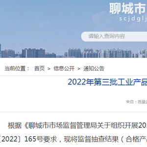 中国质量新闻网讯 近日,山东省聊城市市场监督管理局发布2022年第三批工业产品质量市级监督抽查结果(合格产品)。