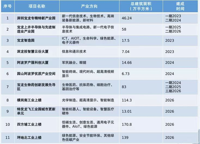 图:龙岗区11个工业上楼项目定位,项目均在近期需启动