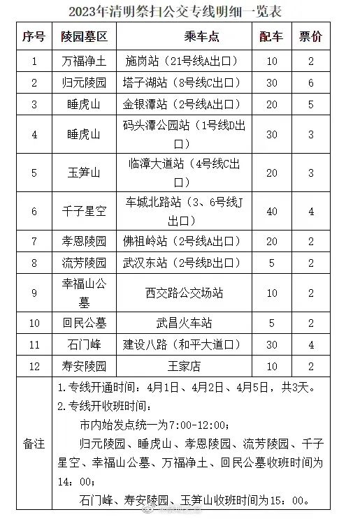清明节当天,省内各大墓区陵园迎来祭扫高峰。为了方便市民出行便利,武汉已开通12条祭扫公交专线,早上七点发车,下午两点至三点收班。