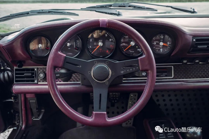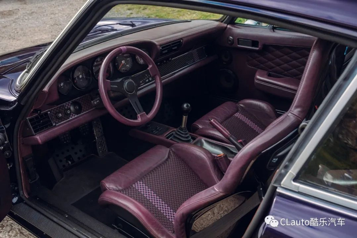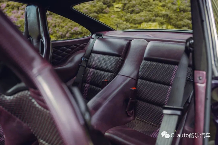 内饰部分,这台CHI001的许多表面都设计了古铜色皮革,搭配Recaro Club Sport座椅、碳纤维装饰、无线智能手机充电器、蓝牙信息娱乐系统、Focal功放和扬声器,以及保时捷皇家紫色缝线和装饰。