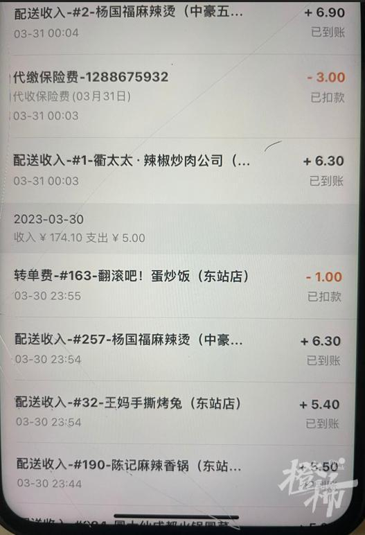 事发前,3月30日22点03分,小黎上线,与此同时,平台自动扣除了3元“代缴保险费”。