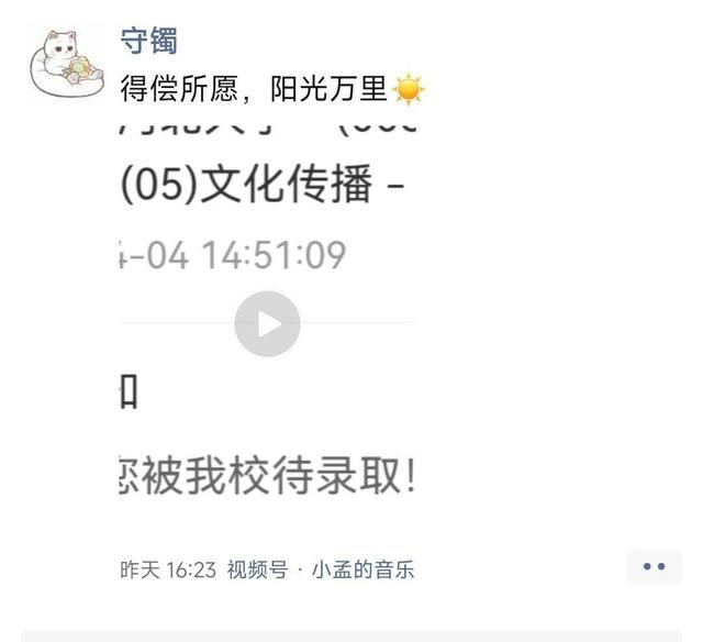 孟鑫沂的考研“上岸”朋友圈文案