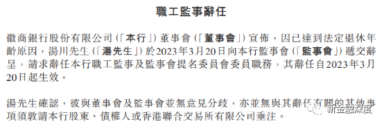 另外,近年来,徽商银行多位高管出于不同原因离职。据不完全统计,2019年至2022年,该行先后共有13位高管辞职,包括监事长、行长、副行长等。今年3月20日,徽商银行再发公告称,该行职工监事及监事会提名委员会委员汤川,因已达到法定退休年龄递交辞呈。