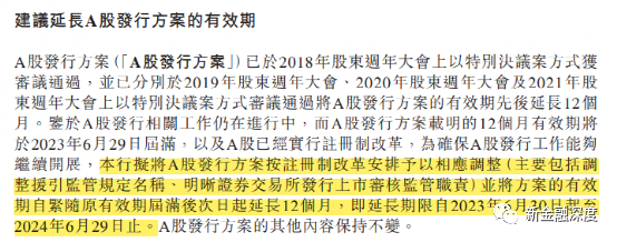 在披露2022年年报的同一日,徽商银行就回A计划发布公告称,该行A股发行相关工作仍在进行中,而A股发行方案载明的12个月有效期将于2023年6月29日届满,以及A股已经实行注册制改革。