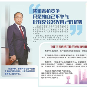 许正宇:首先,作为全世界最大的境外人民币枢纽,我们必须拓宽和加大人民币产品的选择,不单把人民币作为保值的产品,也作为一个可投资产品。所以今年上半年,我们将推出“港币-人民币双柜台模式”,鼓励上市发行人设立人民币柜台及发行更多人民币股票。我们为了配合这个政策,还特别修改了相关法律条例,豁免由庄家做出的、关乎双柜台证券交易所须缴付的印花税,让它有更大利益驱动双币柜台价格趋同。