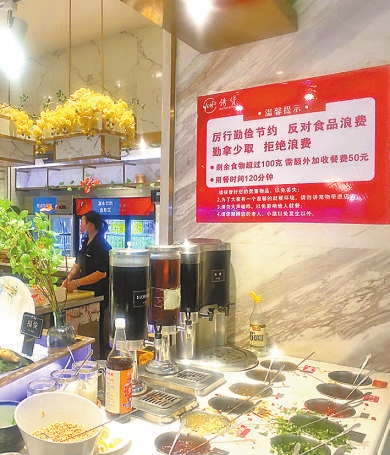 记者调查发现,不少消费者是抱着“吃回本”的心态到自助餐厅消费,因此大吃大喝、多拿多占,最后却造成餐饮浪费。为了引导顾客文明就餐、杜绝浪费,福州市部分自助餐厅通过设立“交押金就餐”“限时就餐”“余食计费”等自助餐消费规则,引导消费者适量取餐,很大程度上减少了食品浪费。例如,福州K牛自助牛肉火锅店规定就餐时间为90分钟,超时要另收费;诱货蒸汽海鲜自助餐厅规定“勤拿少取,剩余食物超过100克需额外支付餐费50元”;加餐·海鲜自助餐厅规定“进店消费顾客买单时需额外支付10元/人承诺金,用餐结束后每桌剩余食物少于150克即可退还承诺金,大于150克则不予退还。”