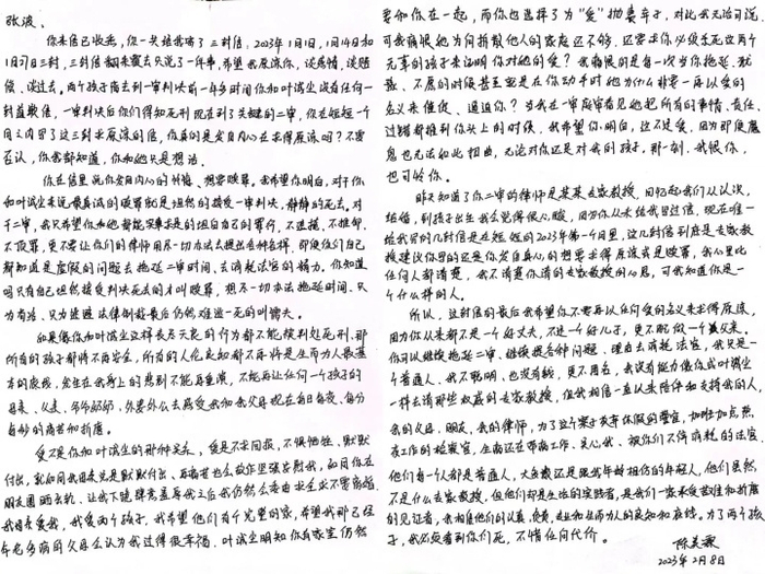 唯一的这三封信,在距离开庭前三个月,紧密寄出,更像是一出苦情戏。“写信的目的是希望我写下谅解书吧,对二审改判死缓或许还有一丝希望,这是张波唯一能为自己争取的。”陈美霖告诉潮新闻记者。