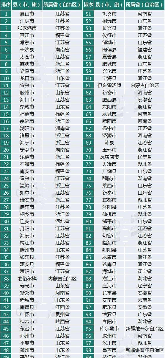 原标题:我国百强县排名,江苏、浙江、山东真的太强了,三省几乎占全榜