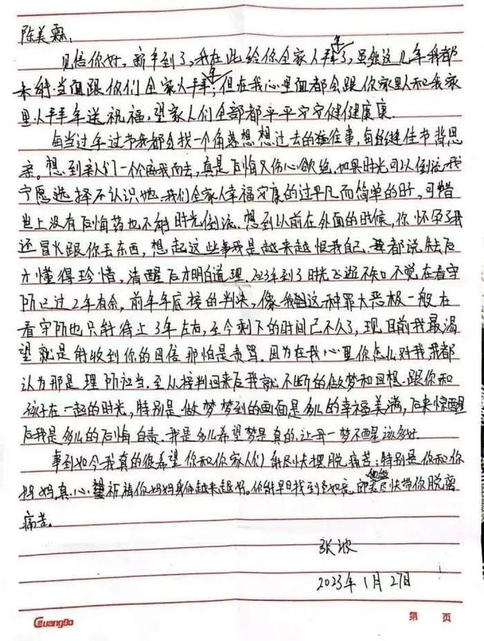 短短27天,陈美霖收到前夫张波三封亲笔信,落款是重庆市南岸看守所。