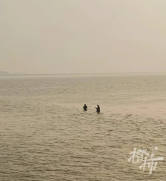 半个月前有网友拍到钱塘江海宁段有人在江里钓鱼。