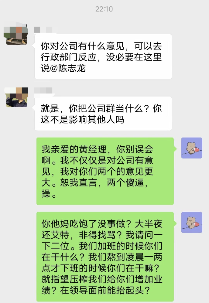 晚上22点10分,陈志龙继续表达强烈对加班和低效的强烈不满。