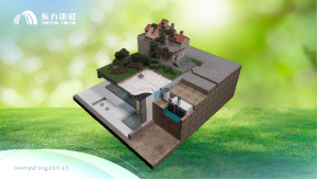 雨虹桃花源防排水系统由防水阻根模块、排水模块、雨水利用模块组成。系统将种植土壤中的渗透水汇集至全封闭的虹吸复合排水板、虹吸排水槽,利用虹吸原理,使雨水在重力和压力、透气的作用下在出水口变径形成满流被抽入沉淀观察井,再经沉淀观察井继而排入雨水收集系统过滤净化,循环利用。