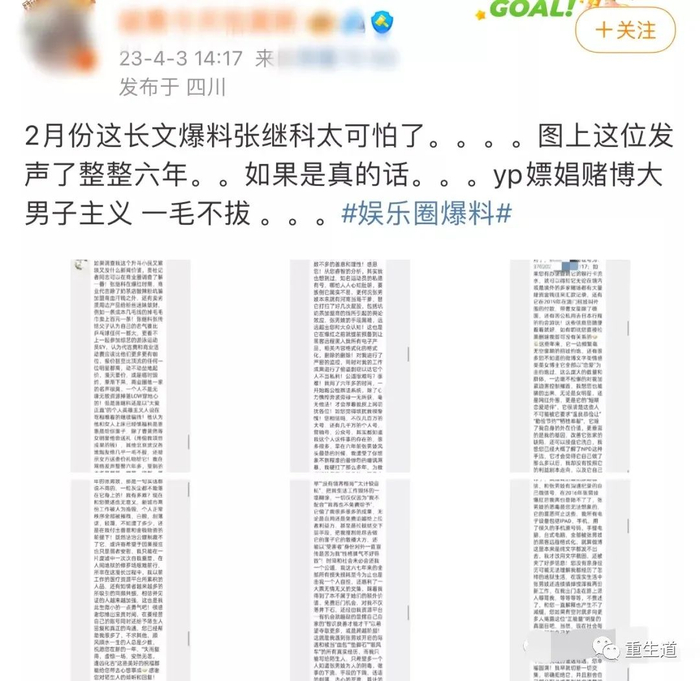 从爆料者的文中可以看出,张继科不止与一位女星有染。