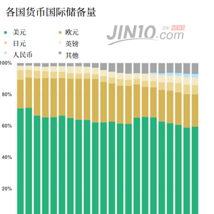 虽然相对于2000年美元占全球外汇储备高达71%而言,目前60%的水平有所下滑,但仍是欧元21%的三倍,更是是日元(6%)和英镑(5%)的十倍以上。