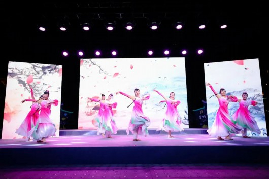 在浦南运河北岸的十二生肖广场,利用原有的开阔公共空间,通过氛围布置和舞台搭建,布置“一川烟雨运河秀场”舞台,把这里变成了一个“人人能登台人人能出彩”的群众文化展示平台,以“上鱼领航,金海飞翼”为美好愿景,营造丰富多元、休闲舒适的城市滨水空间。