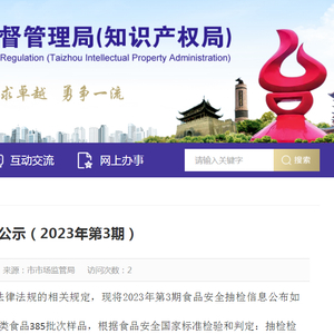 中国质量新闻网讯 近日,浙江省台州市市场监督管理局发布食品安全抽检信息公示(2023年第3期)。