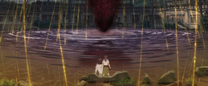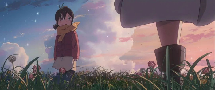 然而像前文谈到的,这些本该增色的材料并未被有机捏合起来,背后或有两大肇因,一是新海诚本人的功力上限所致。以他现阶段的火候,还不足驾驭略为繁杂的嵌套叙事,将岔开的线头收拢。