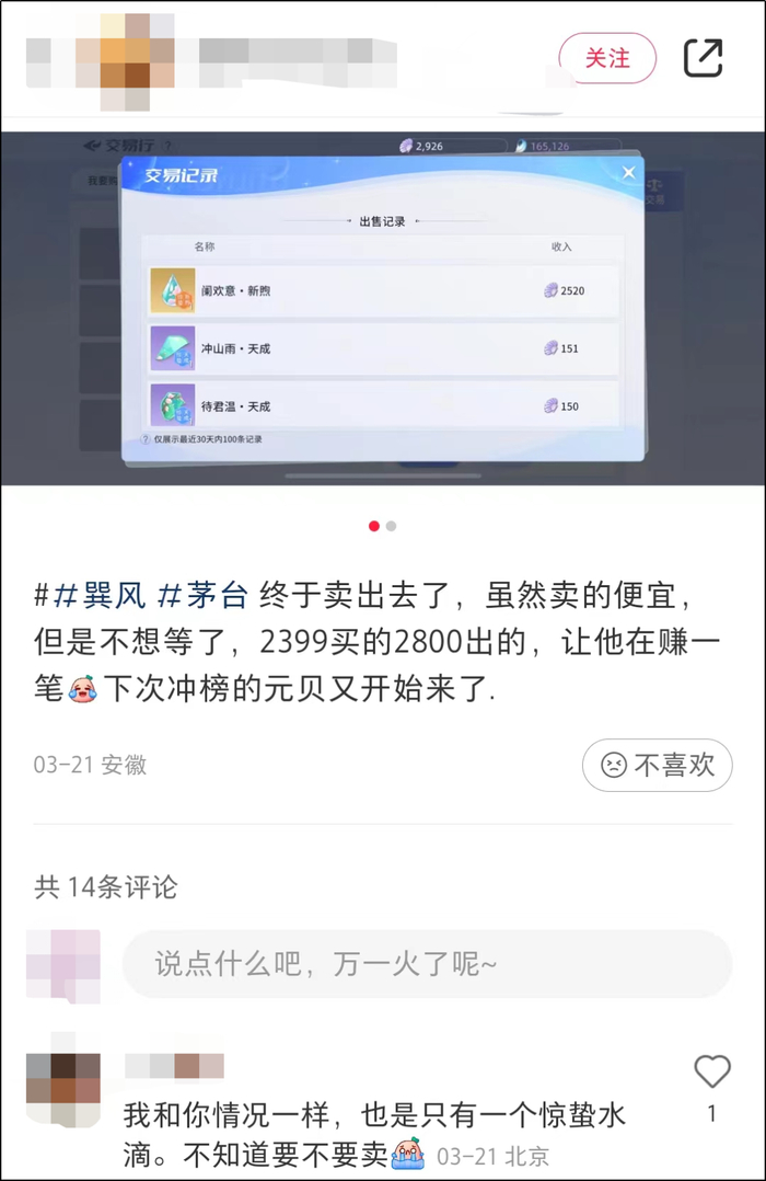 3月21日,有用户在小红书上表示,2399元买的数字藏品材料,2800元出了出去。