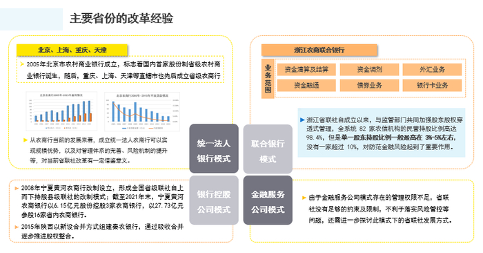 考虑到各省经济社会发展水平不一,农信体系的发展也存在较大差异,未来对于省联社的改革,还需各省根据实际情况,因地制宜的选定省联社的具体改革路径。