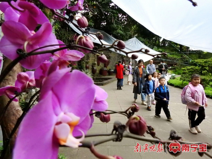 游人在青秀山兰园观赏兰花