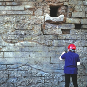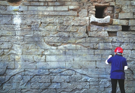 经细心观察,考古人员发现,雕刻图案的石条上均刻有文字编码。“这些文字应该是当时雕刻工人为防止修筑石壁时石块顺序错乱而设计的编码系统。编码的文字,是流行于唐宋以来的习字蒙书,唐宋时期有用作史籍档案编码的先例。这可以更进一步证明它就是宋代保留下来的。”王三营说。