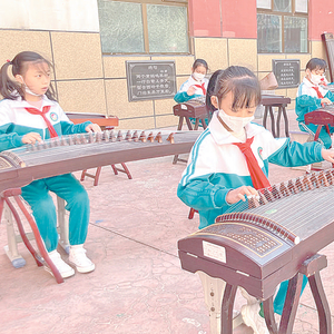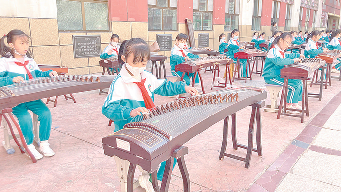 祁连路小学学生练习古筝。