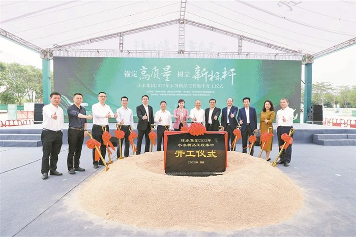 4月6日上午,深圳市水务精品工程首批项目开工仪式在福田水质净化厂二期举行,仪式以“锚定高质量,树立新标杆”为主题。深圳市政府副市长张华、副秘书长刘昂,市水务局局长胡嘉东、副局长黄海涛,市生态环境局副局长尹杰,市国资委副主任娄和儒,福田区副区长冯瑞,南山区副区长叶春,坪山区副区长刘理,市环境水务集团董事长吴晖、总裁龚利民等出席仪式。