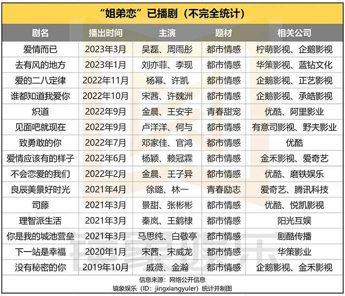 尽管如此,从时间线上来看,2022年下半年至今,几乎每个月都会上新一部“姐弟恋”剧集。内容高产得益于消费市场支撑,受此驱动,“姐弟恋”剧集背后的布局者越来越多。