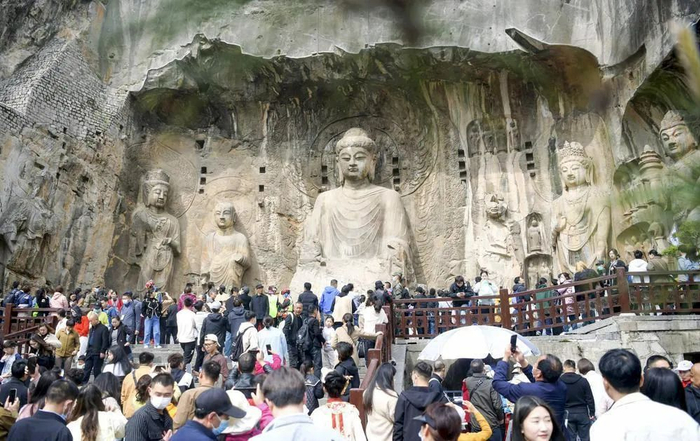 清明假期,游客在河南洛阳龙门石窟景区游览