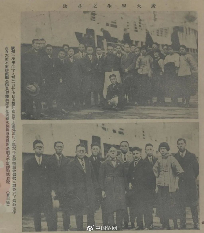 1925年国立广东大学(中山大学前身)校长邹鲁在广州送别留法学子