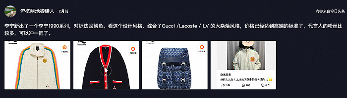 除此之外,“李宁1990”的设计风格,也有一些网络评价是大牌的设计风格杂烩。虽然当时邀请到了顶流明星肖战代言,但只要不是明星同款,销量并不尽如人意。
