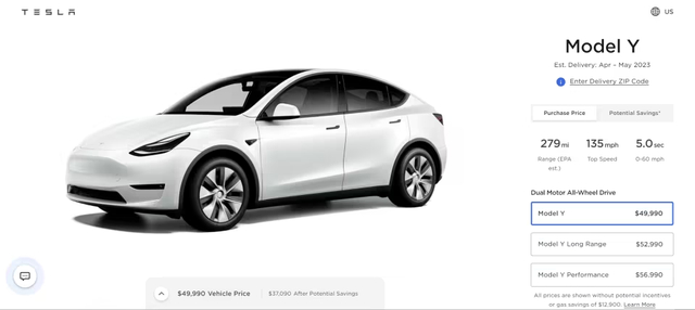 4月7日,特斯拉在其美国官网上架了新款Model Y,配备AWD(双电机全轮驱动)动力系统,售价49990美元。