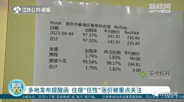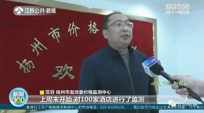 扬州市发改委价格监测中心工作人员范羽告诉记者:“上周末开始了对100家酒店进行了监测,对于价格涨价过大、涨幅异常的酒店名单,我们及时通报给了市场监管、文广旅等相关部门。”