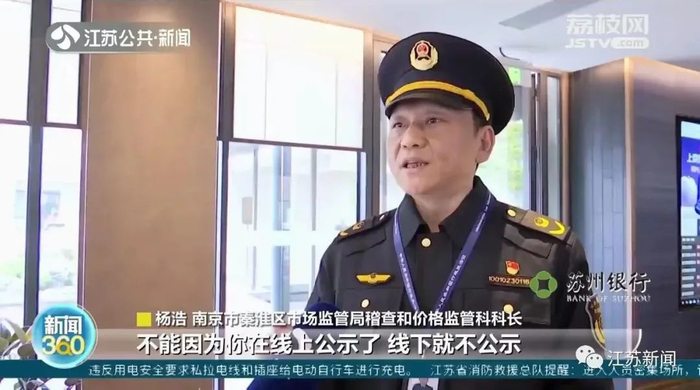 南京市秦淮区市场监管局稽查和价格监管科科长杨浩表示:“一定要落实明码标价制度,收费的每一项必须明码标价,让消费者明明白白消费。只要是经营场所就必须要做到明码标价,不能因为做线上做得多就在线下不公示,要实时更新,有变动就必须要更新,履行价格承诺。”