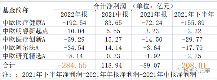 2021年下半年,葛兰的五只基金亏损是208亿【=全年利润(-89亿)-上半年利润(118.94亿)】。