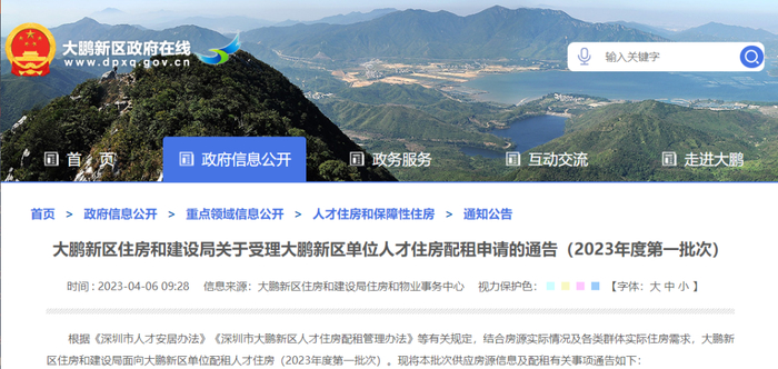 发送关键词【大鹏新区人才住房】